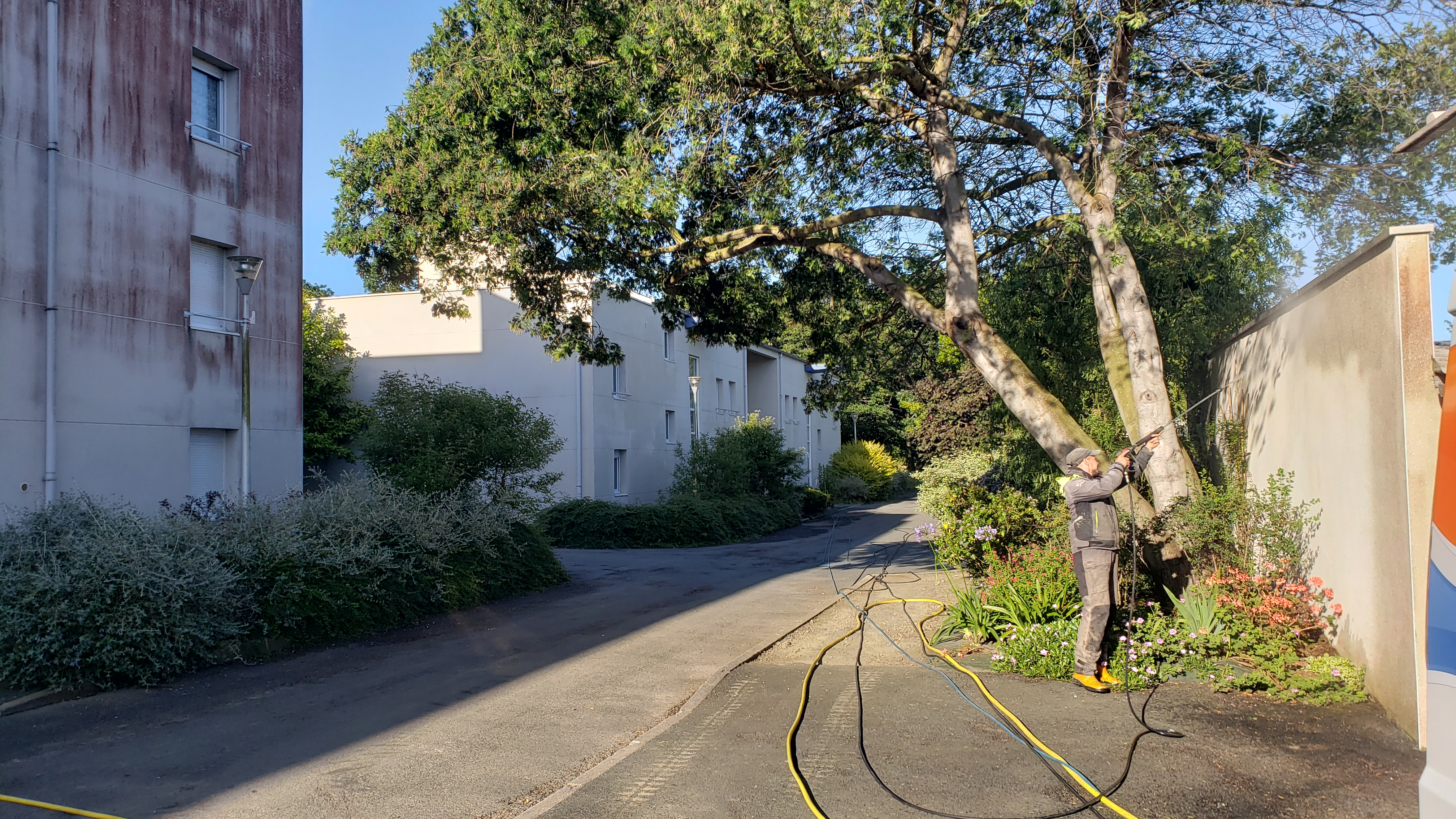 Zéro même... chantier à challans nettoyage de façade ( bâtiment de trois étages + rdc ) Prévu une semaine... lundi absent. commencé mardi fini vendredi, ils ont fait que 1 bâtiment sur 4, EPI Absent, pelouse escinter partout tracé de roue de nacelle énorme. Une pulvérisation de traitement curatif : ABSENT. Rincage : vite fait. pulvérisation traitement préventif : ABSENT. DONC TRAVAIL NON EFFECTUÉ. conseil agent de nettoyage, veuillez vérifier devis, temps passé, et voir pénalité de retard.